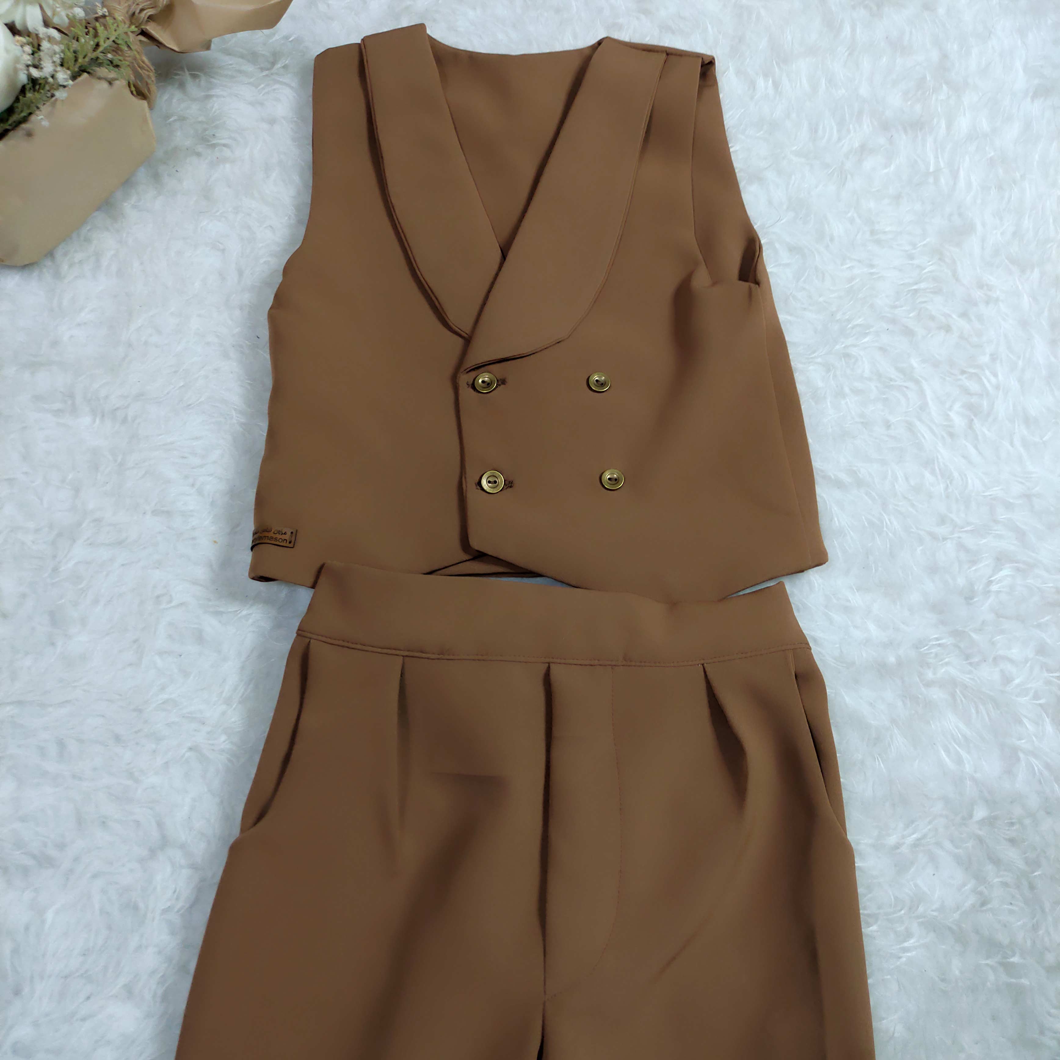 اگر دنبال لباسی هستی که توی اولین نگاه با بقیه ست های پسرانه فرق داشته باشه ، این مدل دقیقا برای همون لحظه طراحی شده. ست جلیقه ، شلوار و پیراهن با پاپیون وی استایل ، از اون لباس هاییه که توی مهمونی های خاص و عکس ها ، بدون شلوغ کاری دیده میشود.