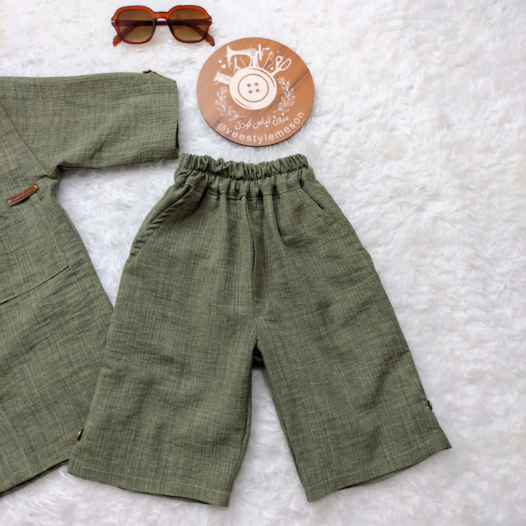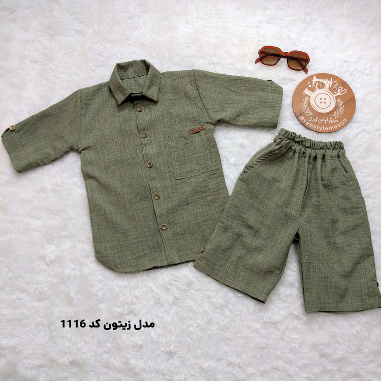 ست پیراهن شلوارک بچگانه پسرانه مدل زیتون کد 1116