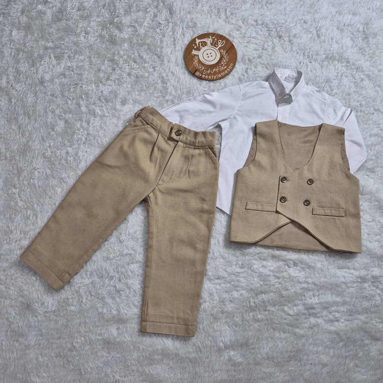 جلیقه شلوار پیراهن بچگانه مجلسی مدل خاکی کد 1162